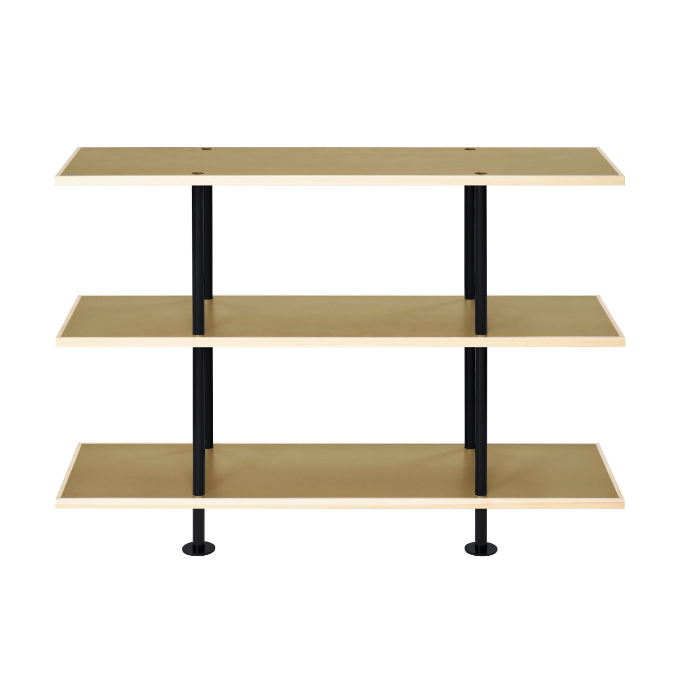 Its simple structure—shelves sandwiched between upper and lower posts—provides solid strength. The number of tiers can be adjusted from two to four by adding or removing parts.