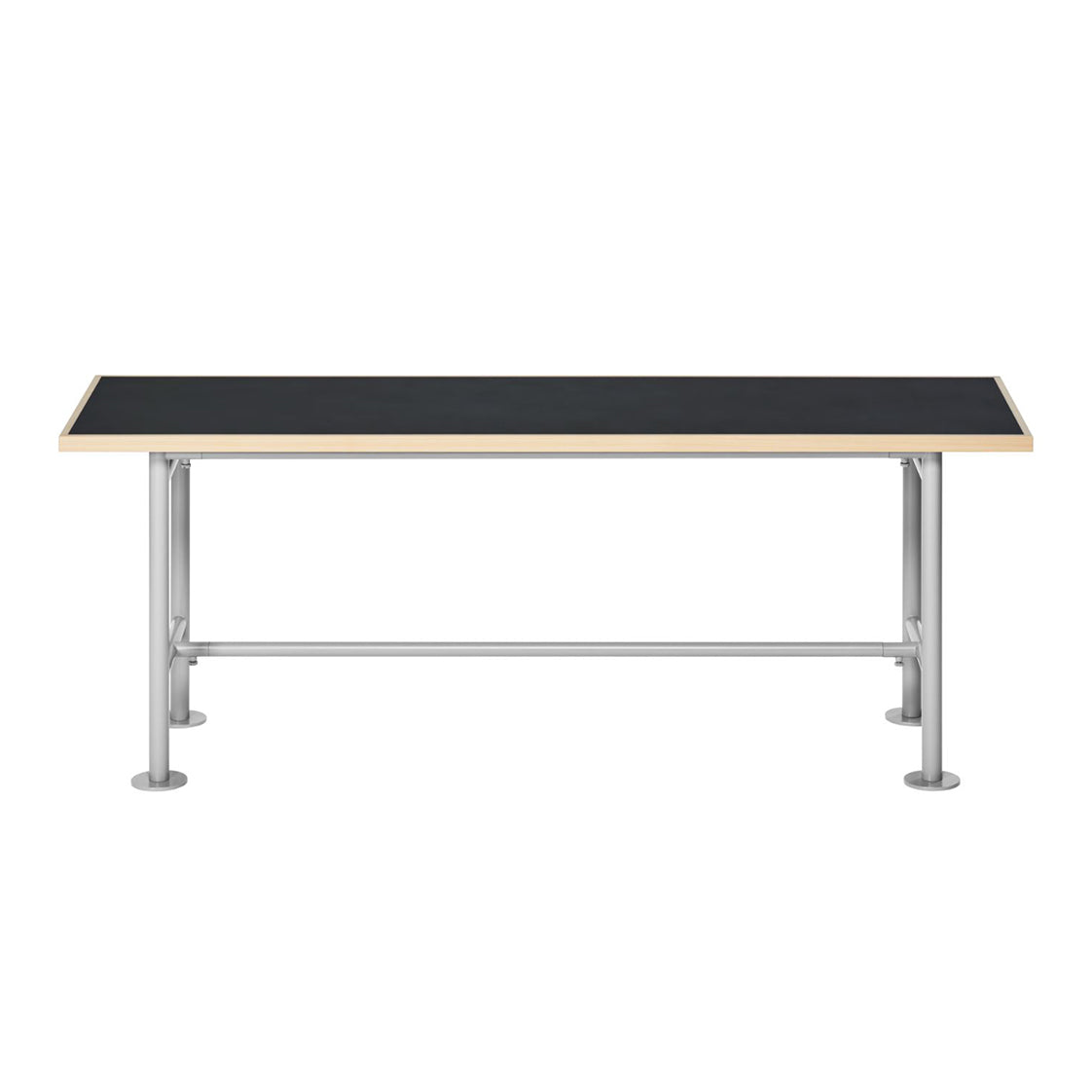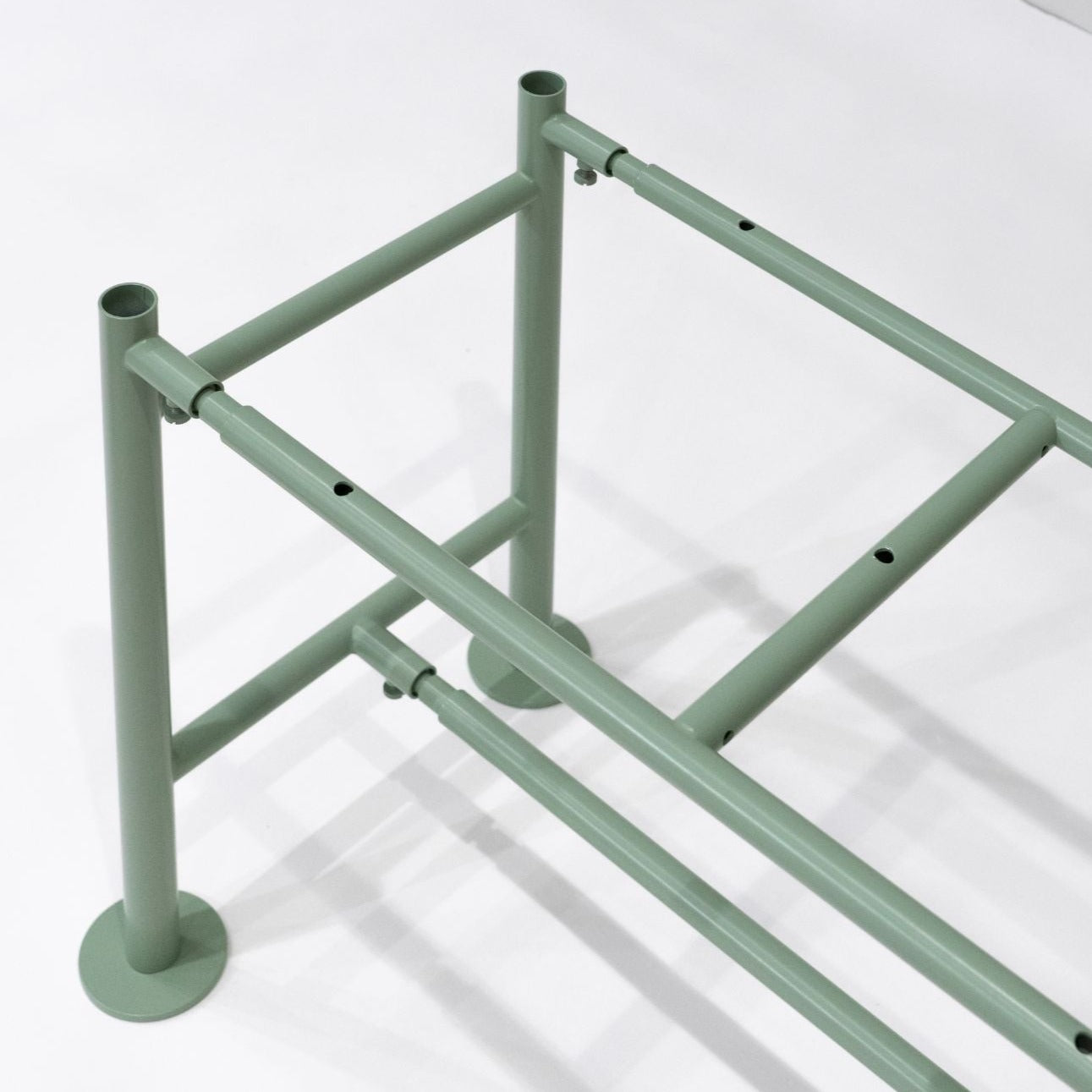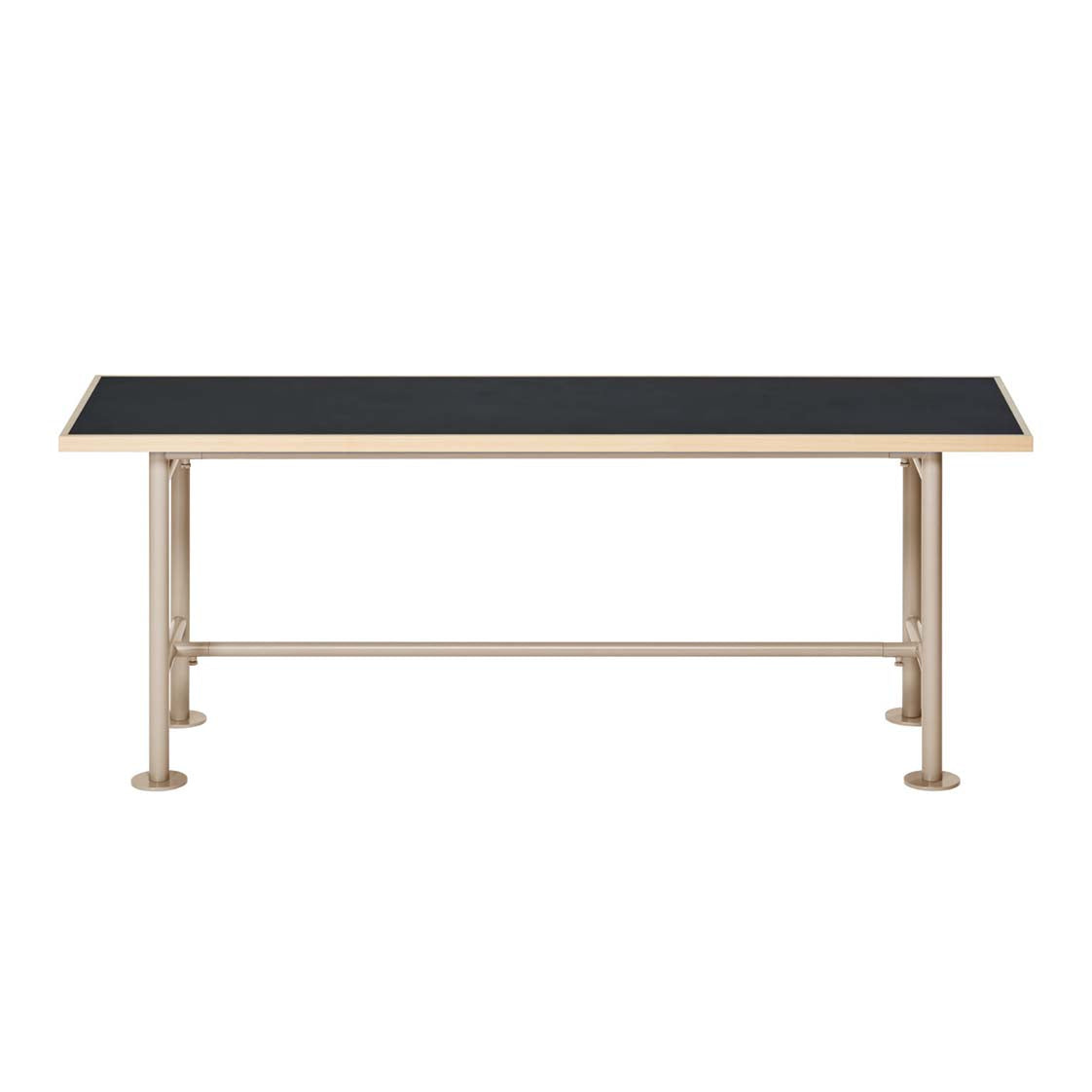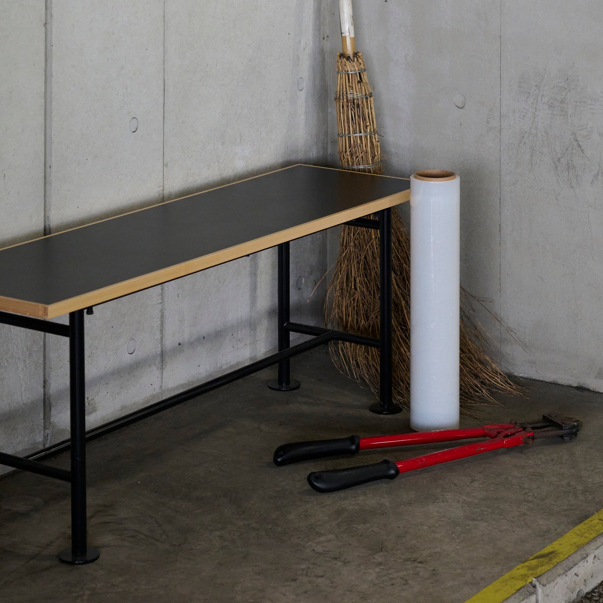 The legs of this table are made of steel pipes, providing a simple structure that is lightweight yet sufficiently strong. The base has a wide surface area to prevent damage to the floor, and the base itself acts as an adjuster, ensuring stability even on uneven surfaces.