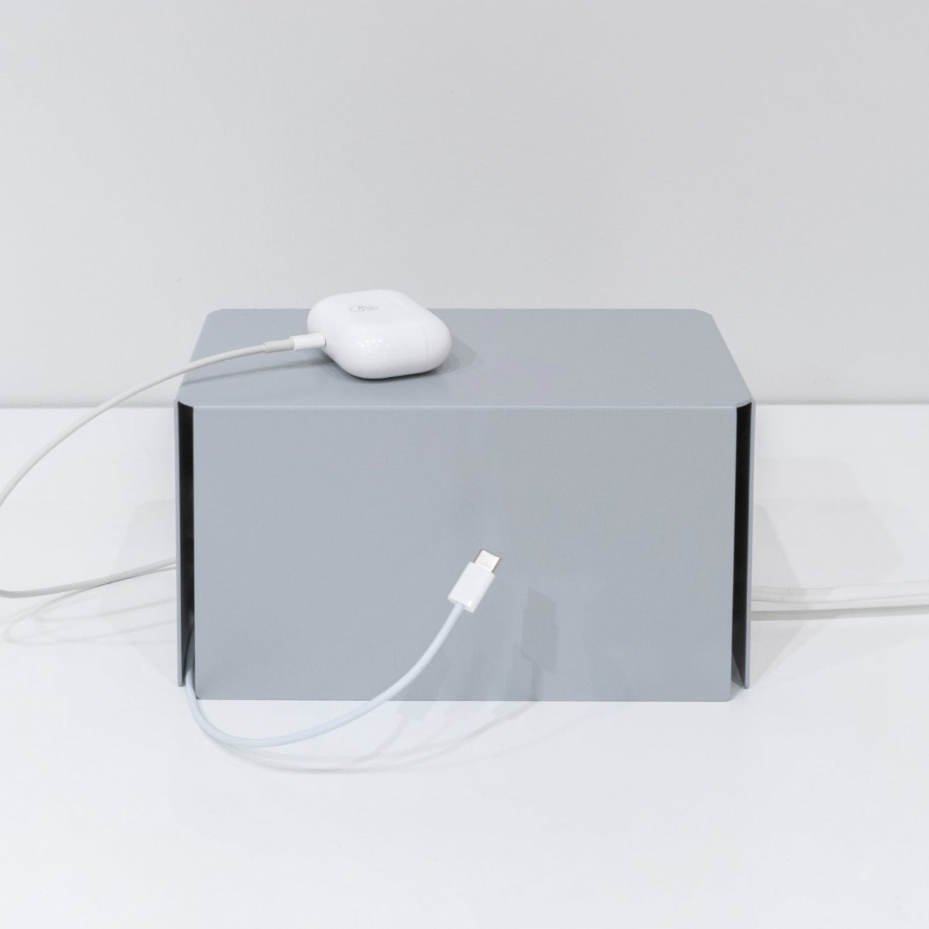 This is a cable box made by bending a metal plate. It has side notches and slits at the four corners, allowing cables to pass through. The presence of slits at the four corners prevents excessive heat build-up inside. It neatly organizes tangled wiring and protects against dust.