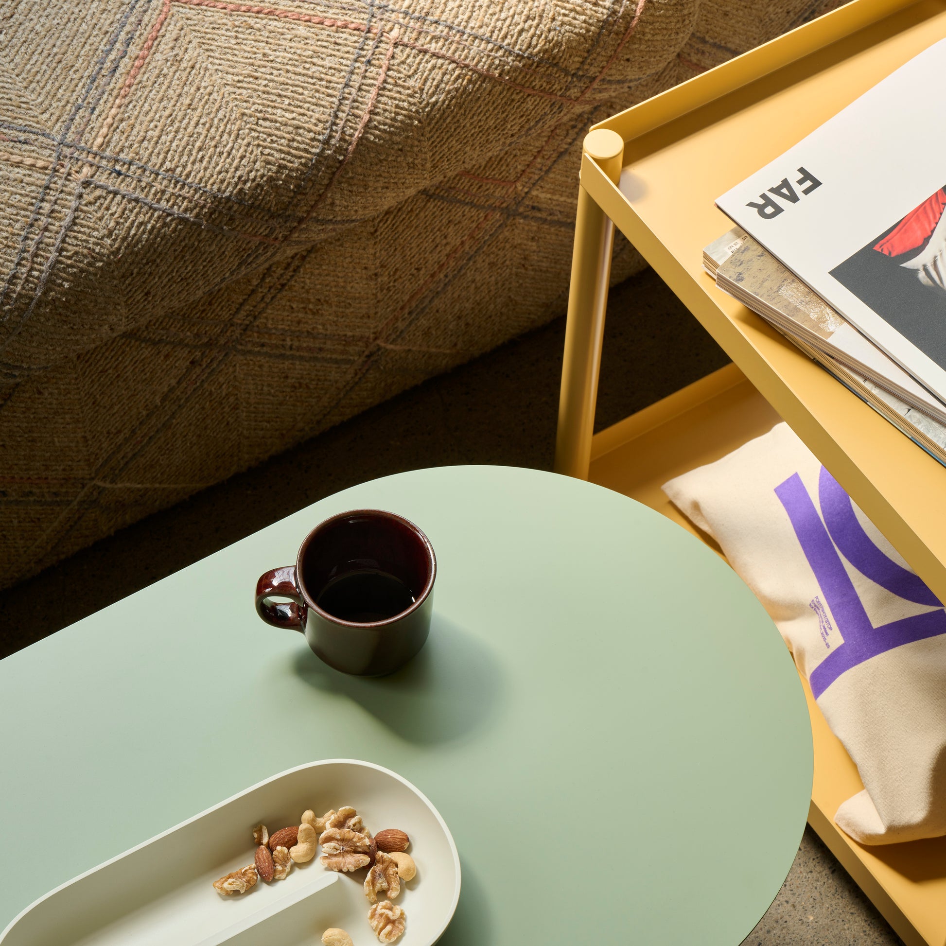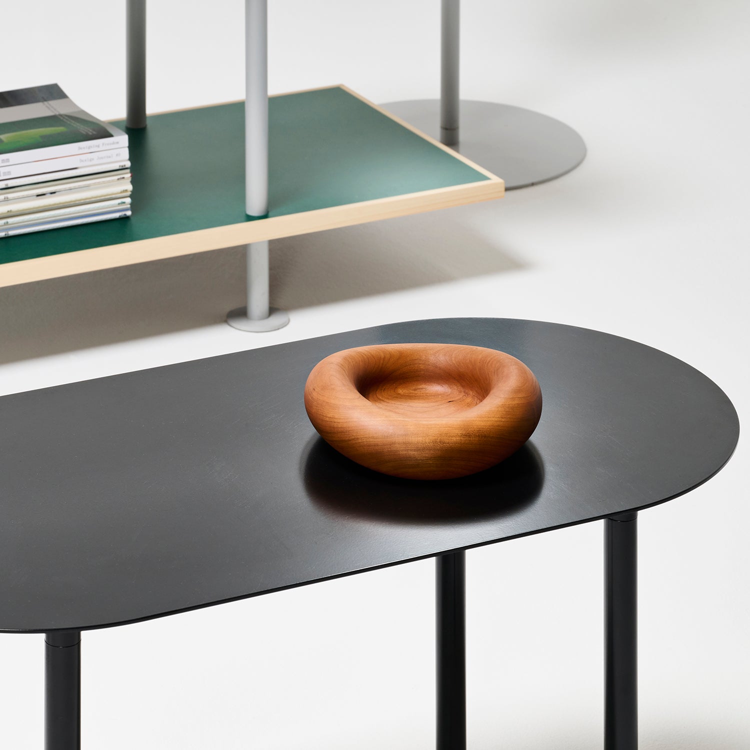 限られた空間にもなじむコンパクトなオーバル型のフォルムは、ソファと合わせやすく、日常使いのテーブルとして様々なシーンに対応します。