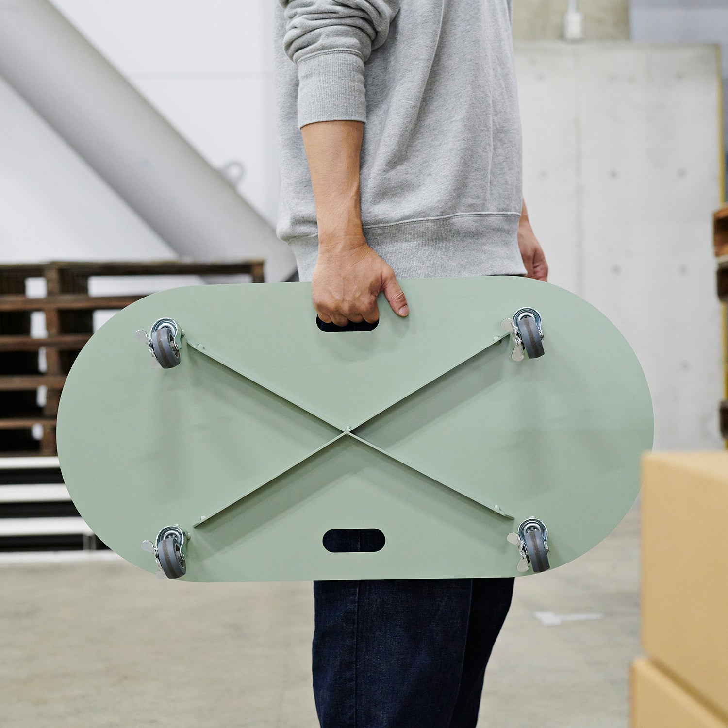 業務用の台車と比べて存在感がないので、営業中の店舗での軽作業などに向いています。