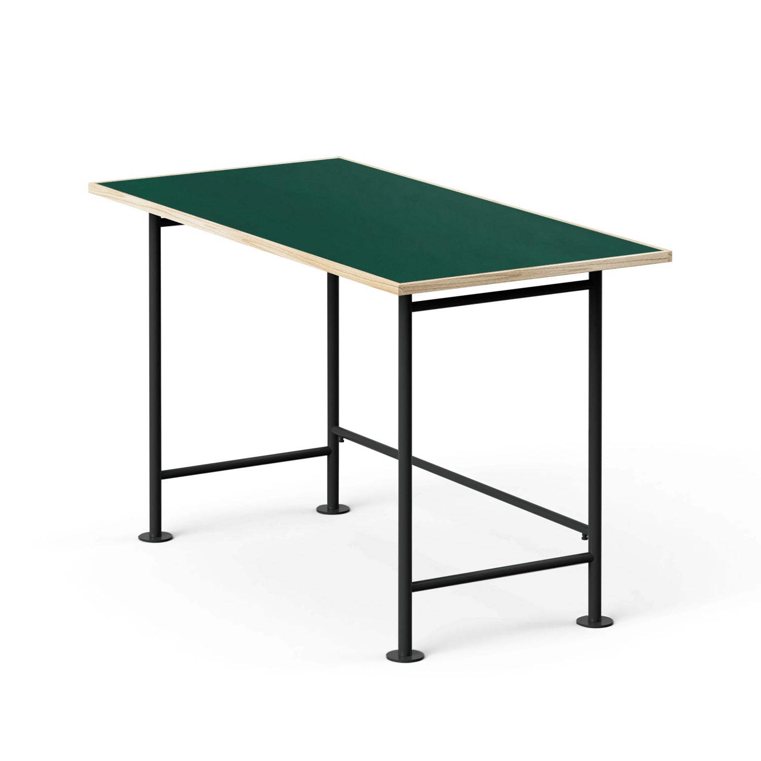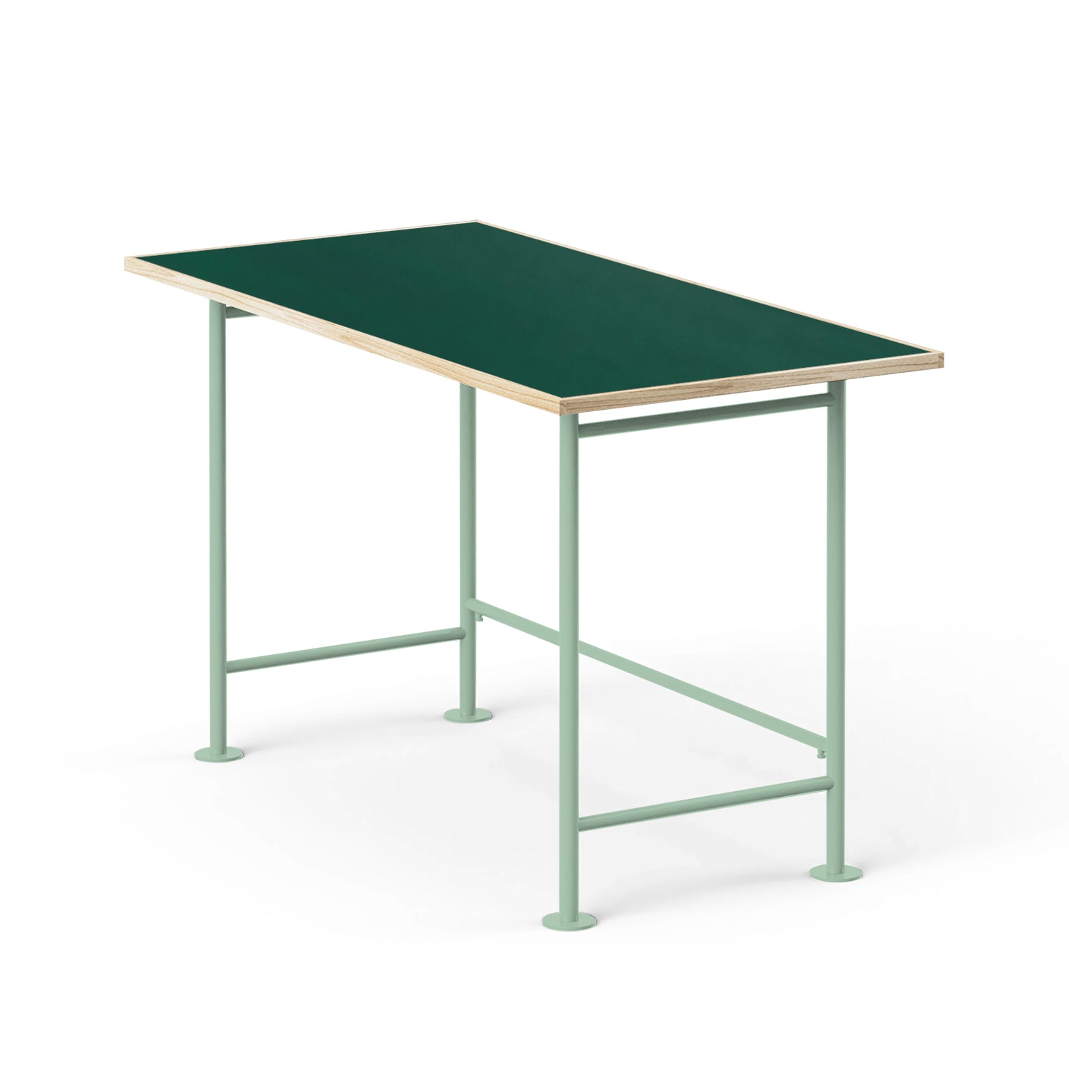 組立式のスチール脚に、カラーMDF とヒノキを使用した天板を合わせたデスクです。