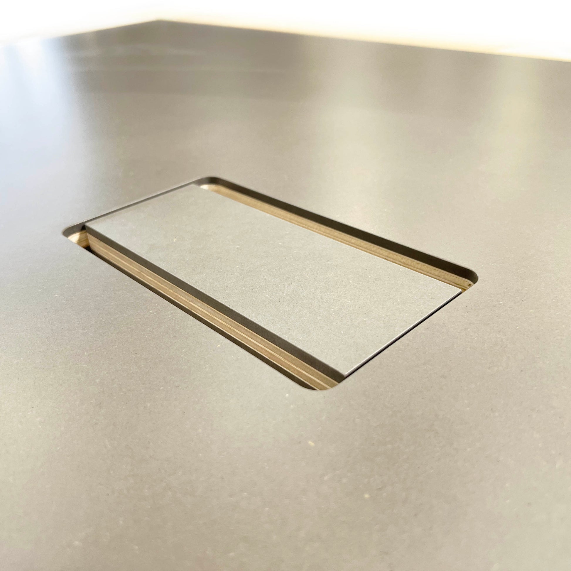 デザイン性と機能性を兼ね備えた、組立式スチール脚とカラーMDF・ヒノキ天板を組み合わせたフリーアドレスデスクです。配線穴2か所付きで、スタイリッシュかつ機能的なオフィス環境を実現します。