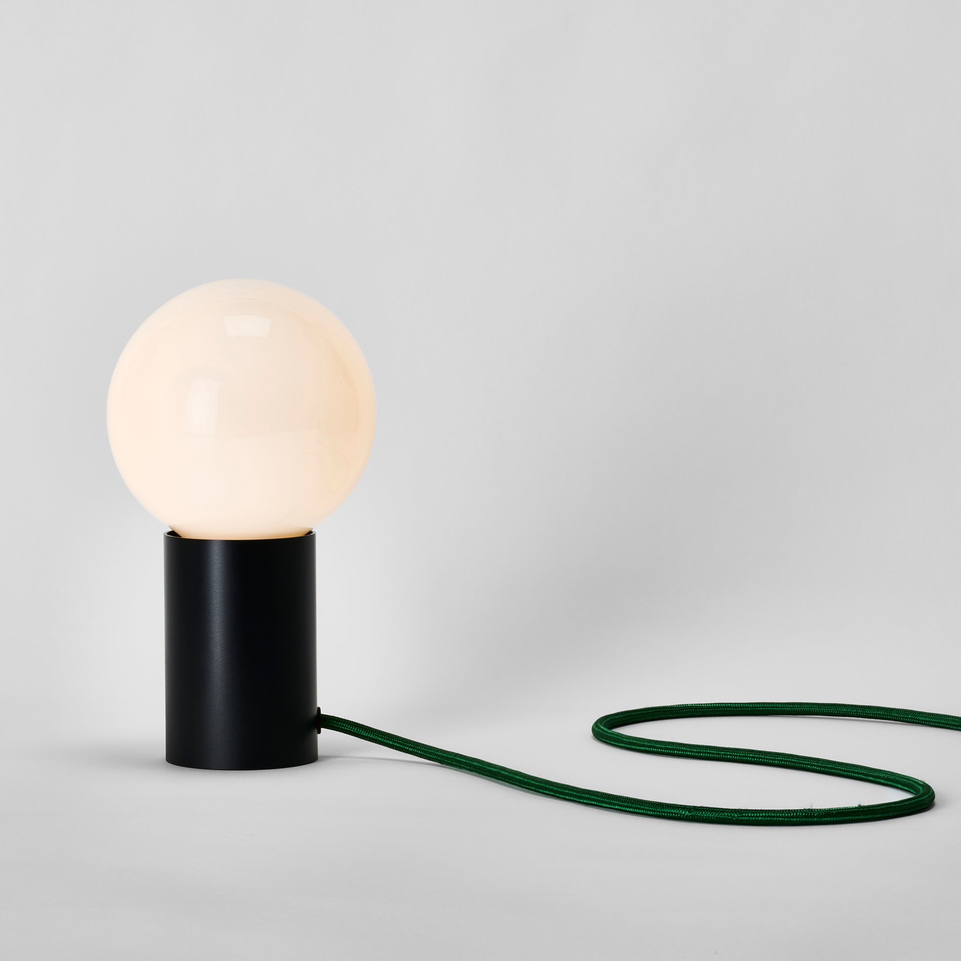 This table light combines a cylindrical body with a large LED bulb, creating an iconic silhouette of lighting.