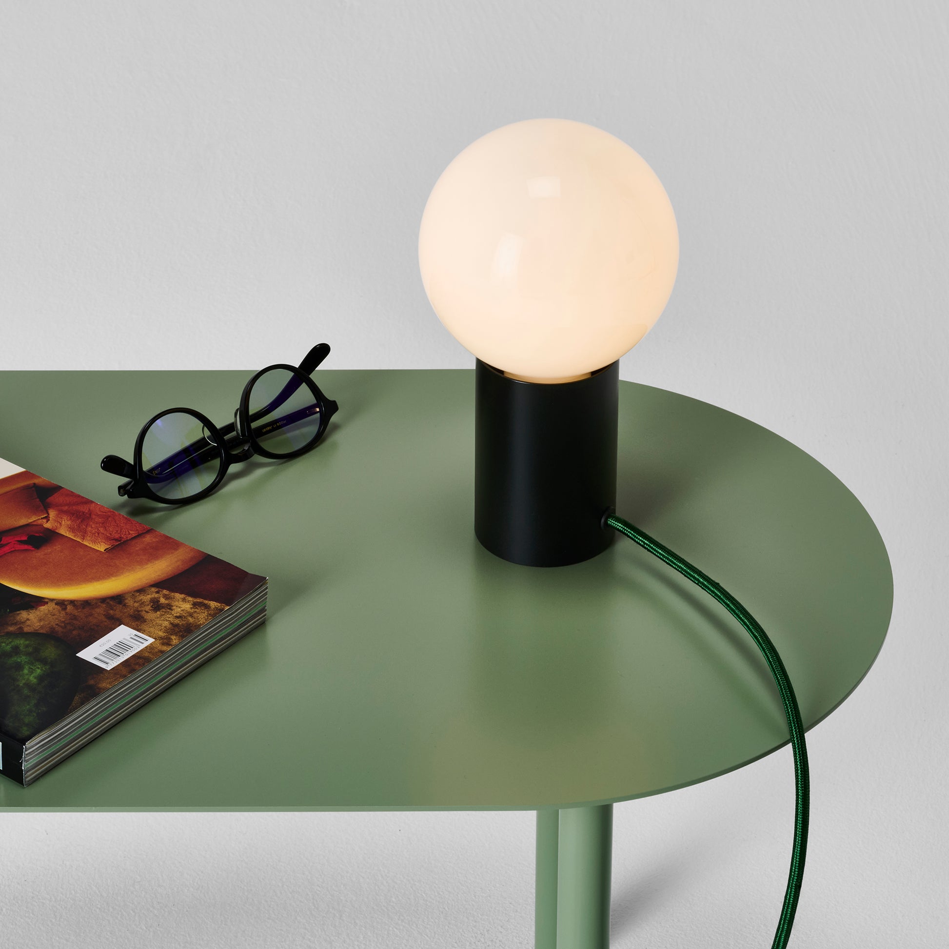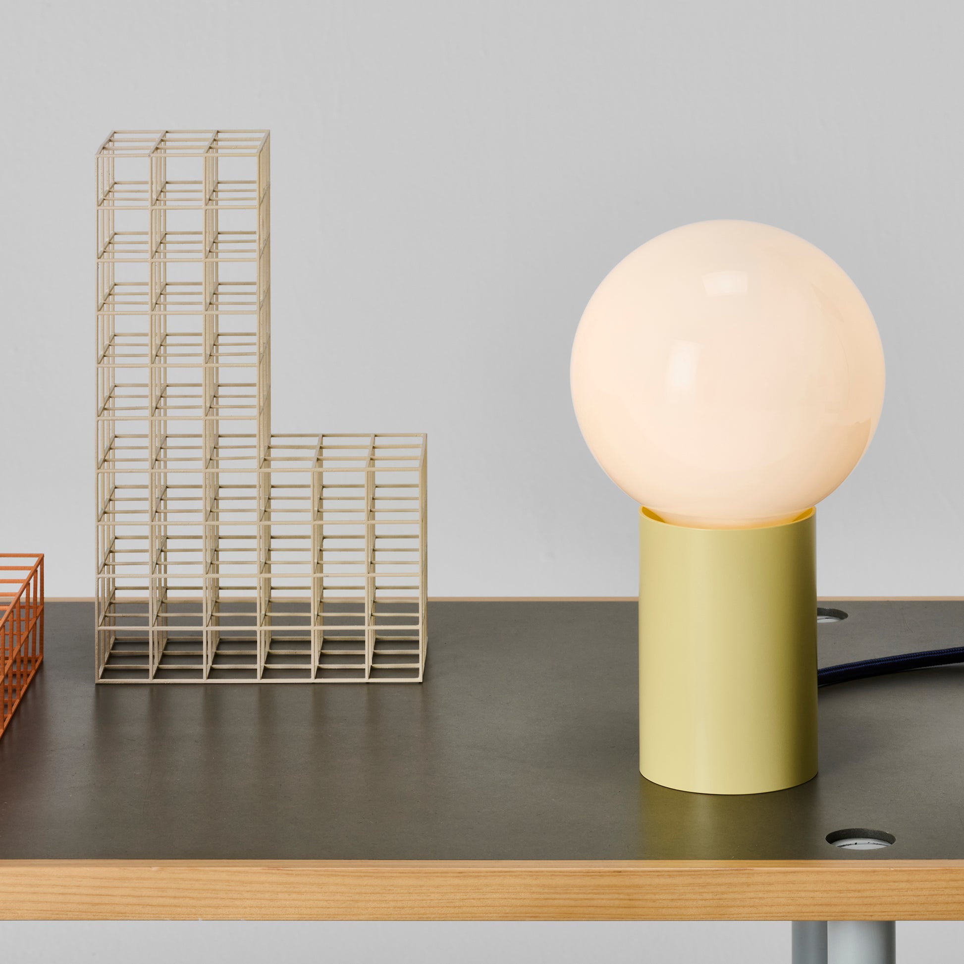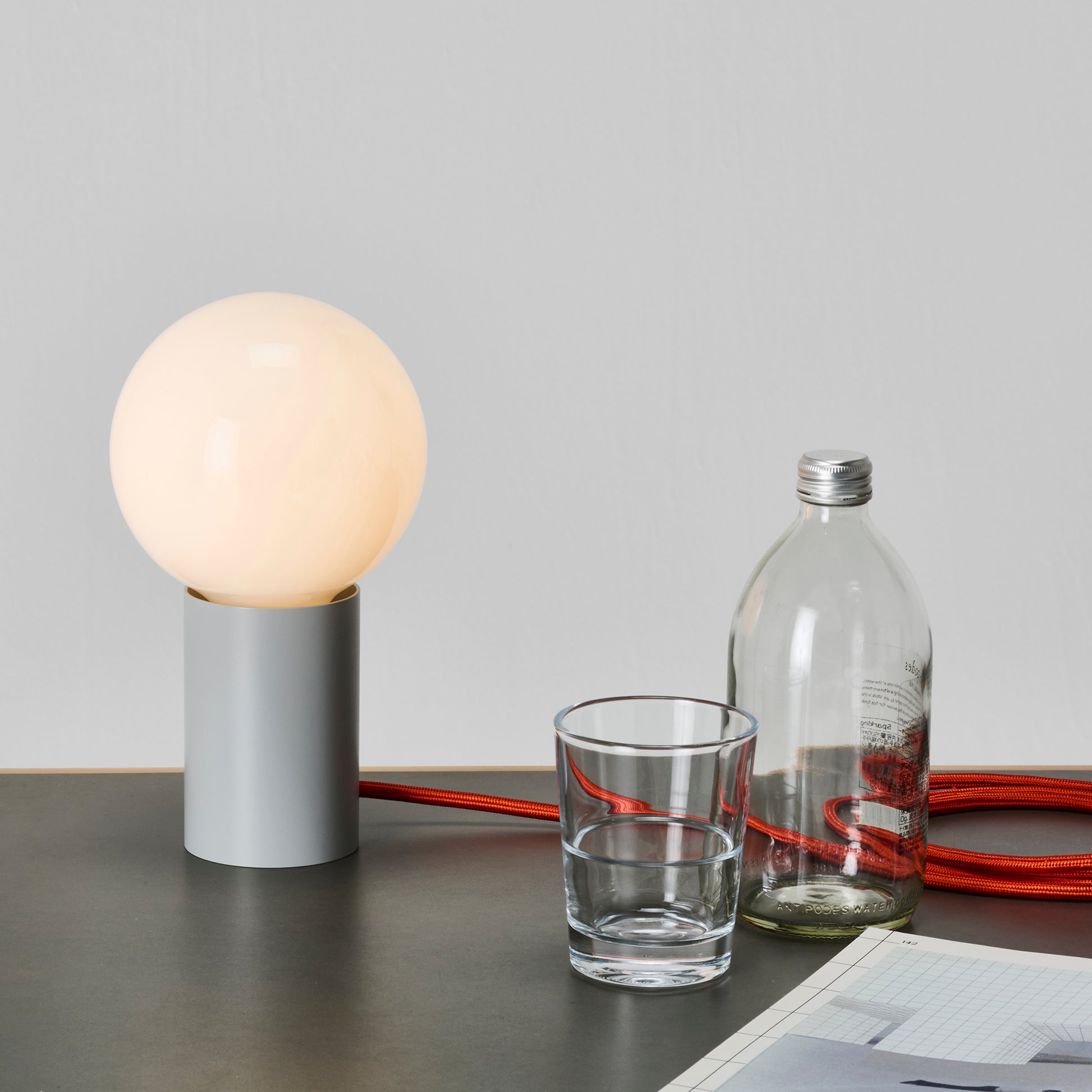 This table light combines a cylindrical body with a large LED bulb, creating an iconic silhouette of lighting.