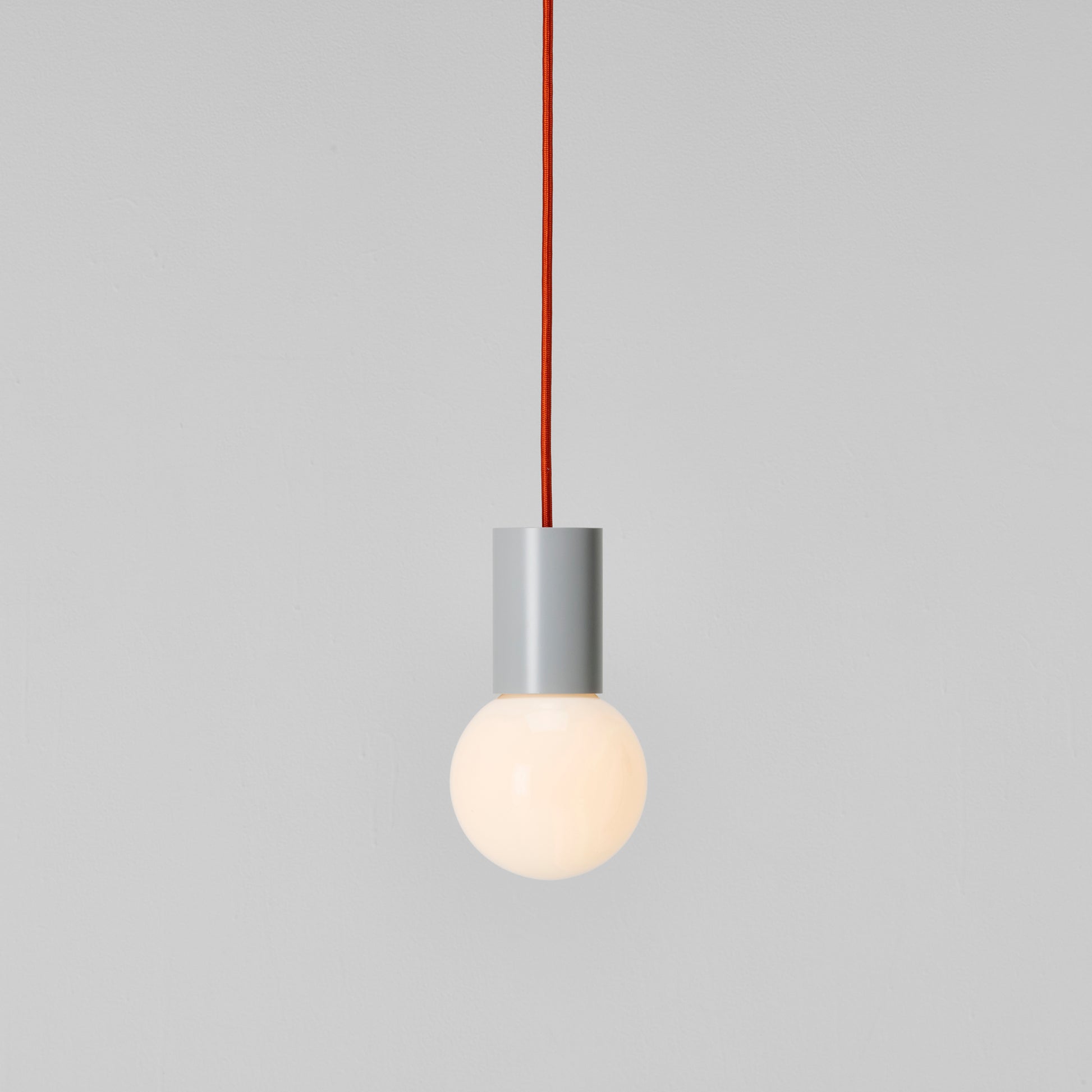 This pendant light combines a cylindrical body with a large LED bulb, creating an iconic silhouette of lighting.