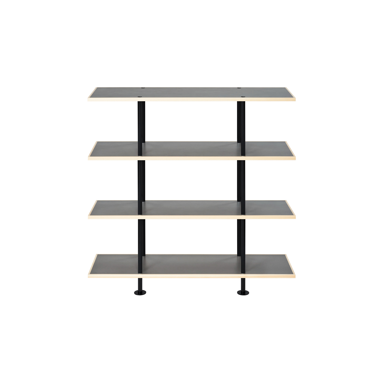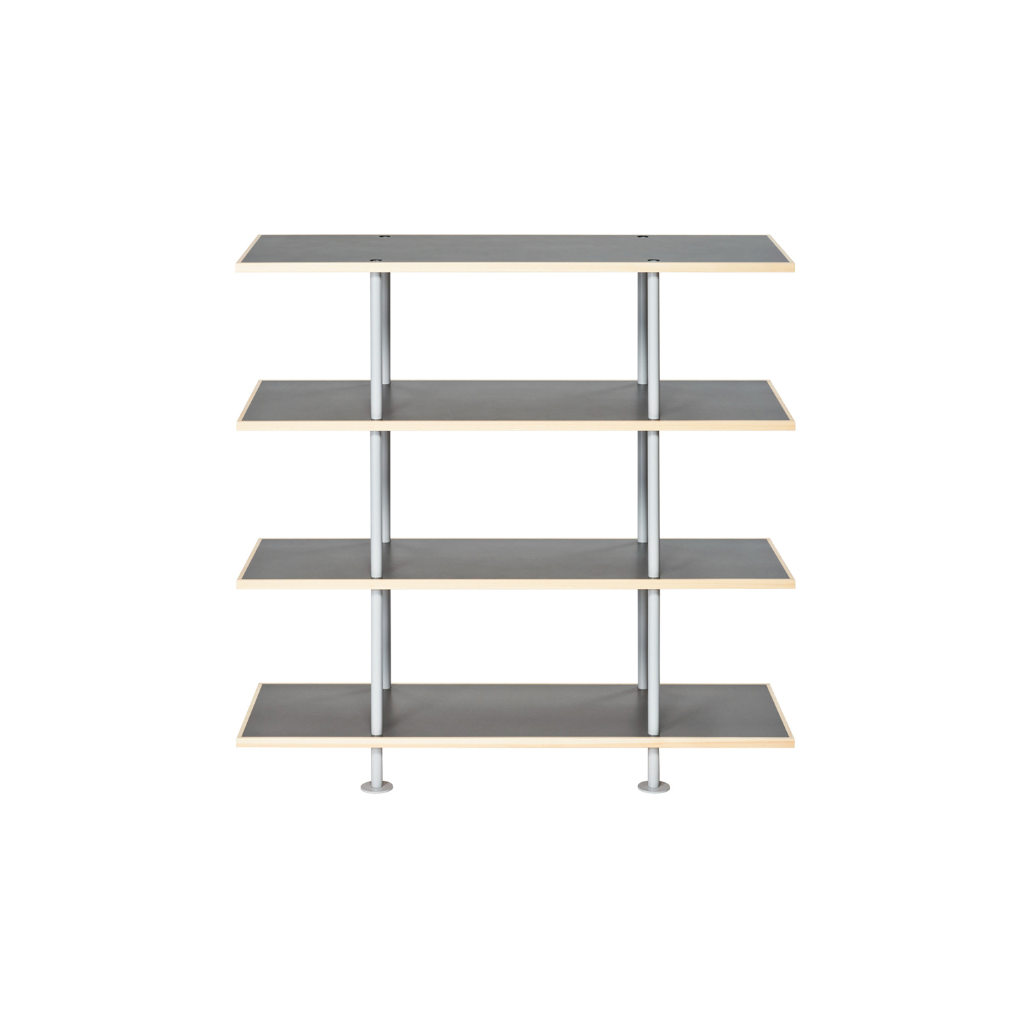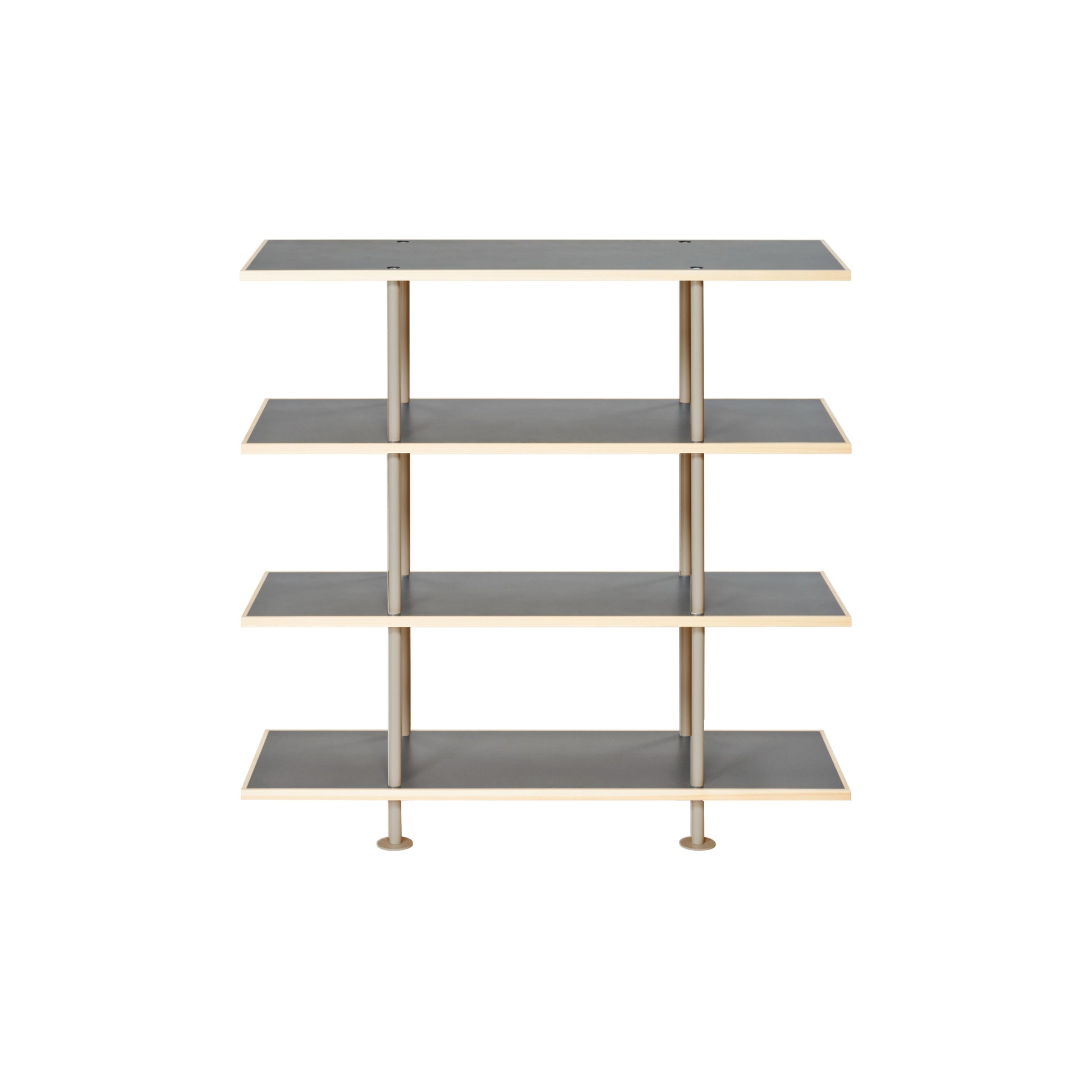 上下の支柱で棚板を挟むシンプルな構造ながら、しっかりとした強度があり、パーツの増減によって2段~4段まで組み替えが可能です。