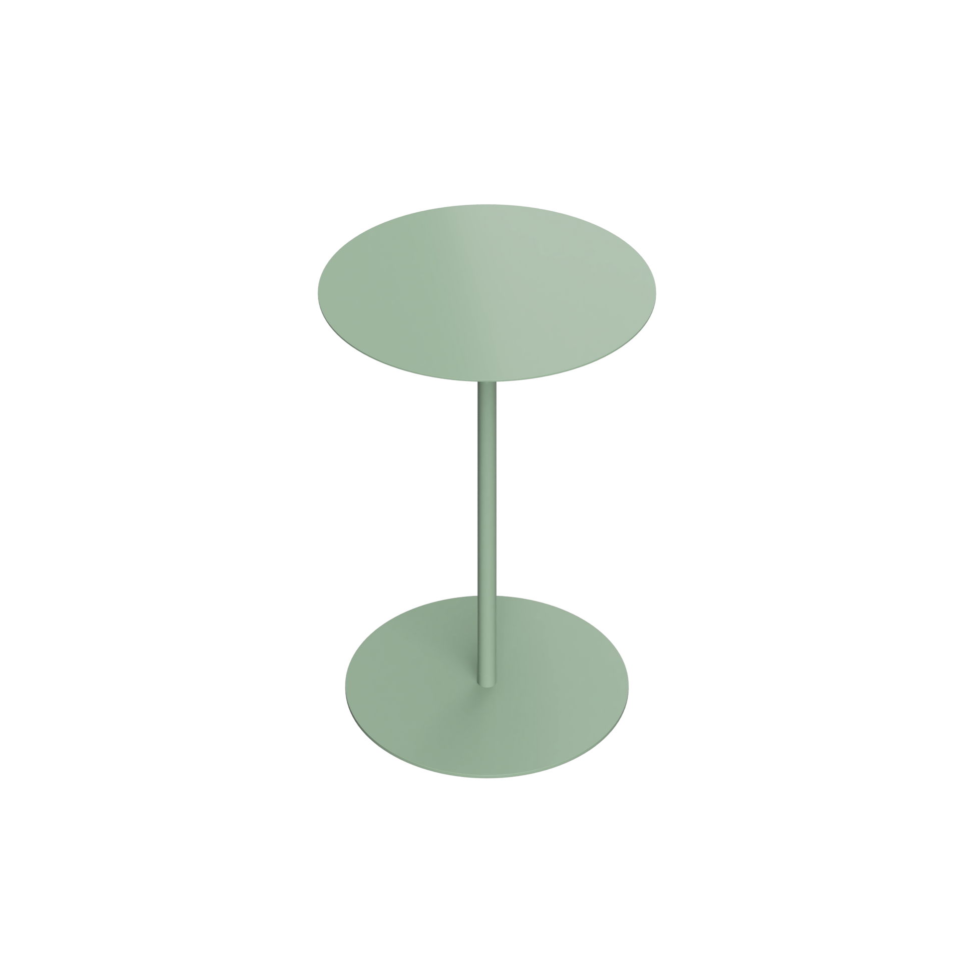 STB-03は、ゆとりのある天板Φ450mmで、PC作業や軽食にも適しており、薄い天板ながらしっかりとした強度を持っています。