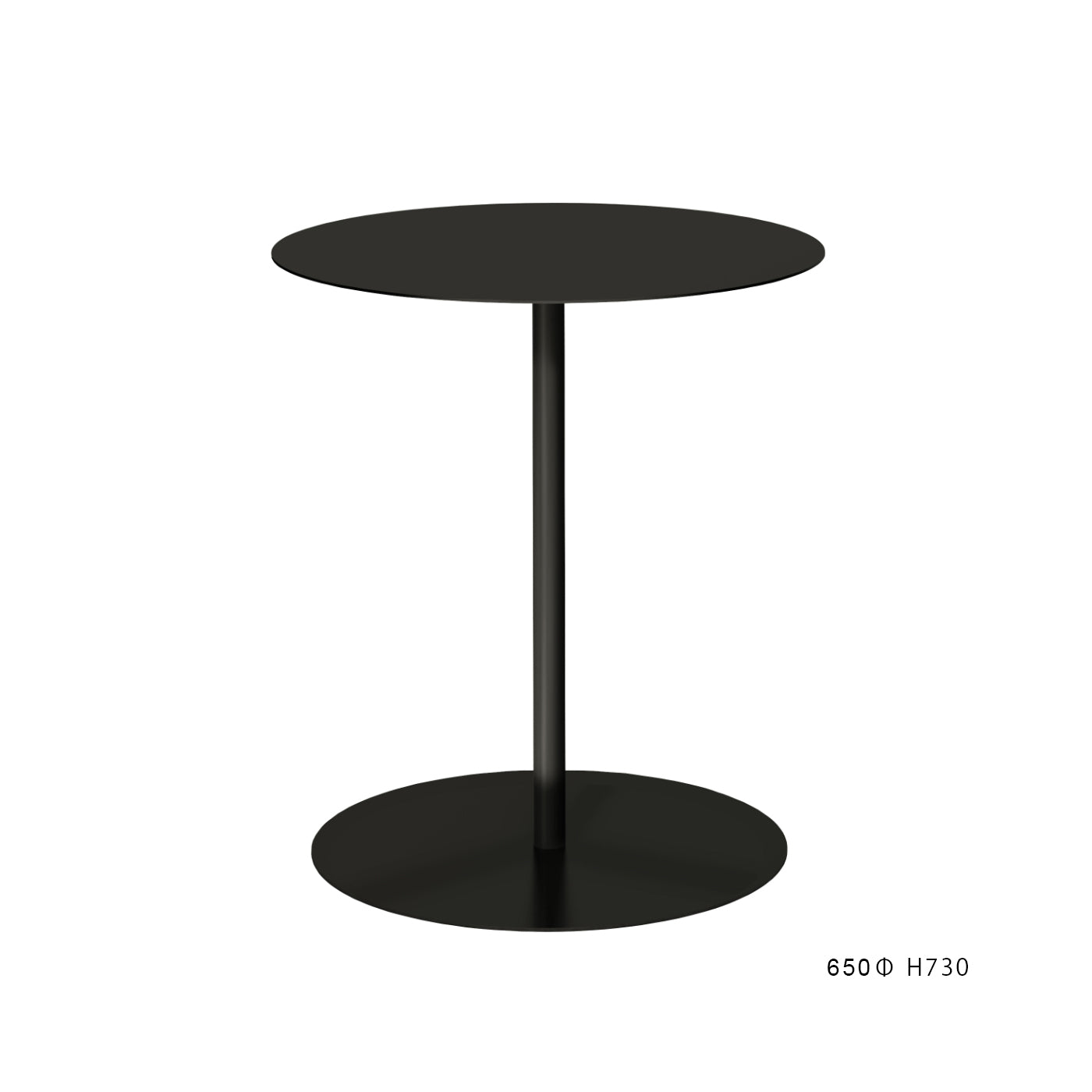 薄い天板とスマートな1本脚のシンプルな構造ながら、しっかりとした強度があります。スツールやコンパクトなチェアと組み合わせて、ご家庭のダイニングシーンからカフェやショップ、オフィスまで、幅広いシーンでお使いいただけます。