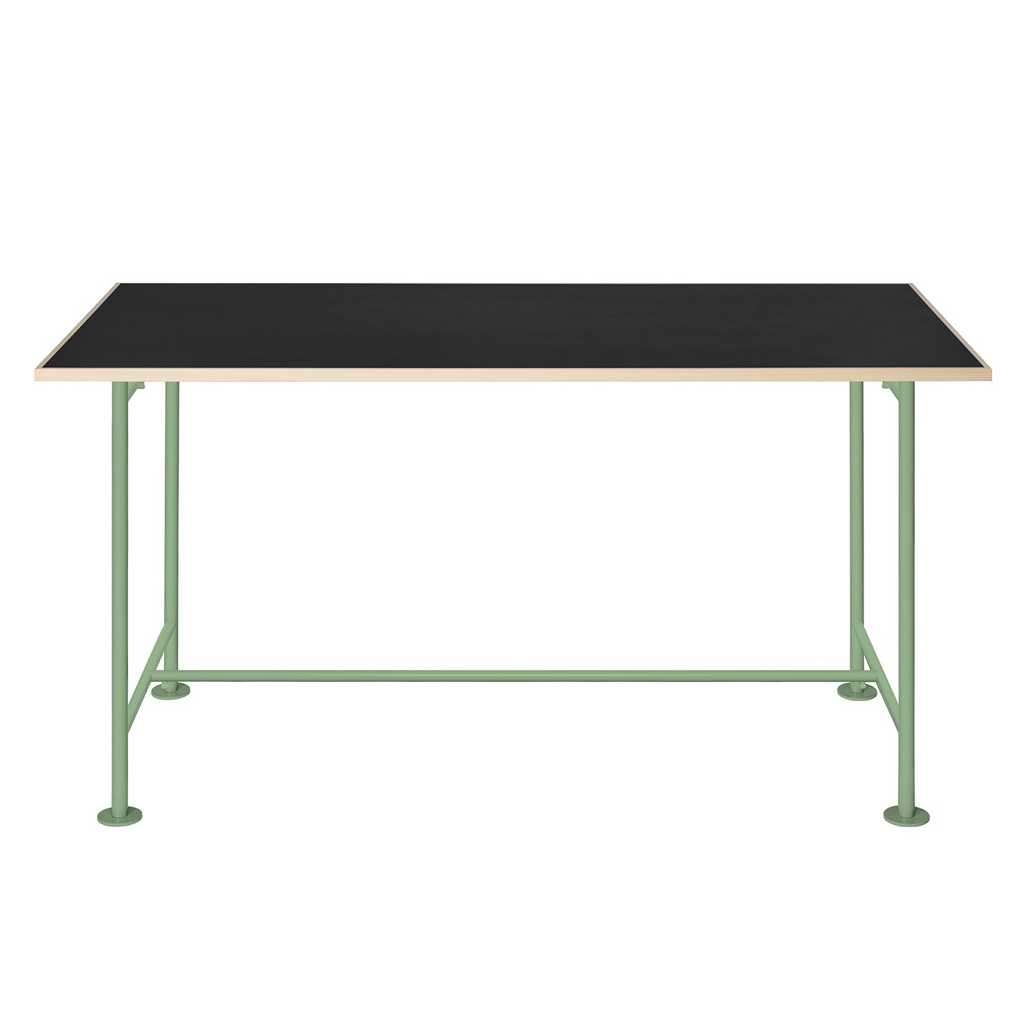 組立式のスチール脚に、カラーMDF とヒノキを使用した天板を合わせたテーブルです。