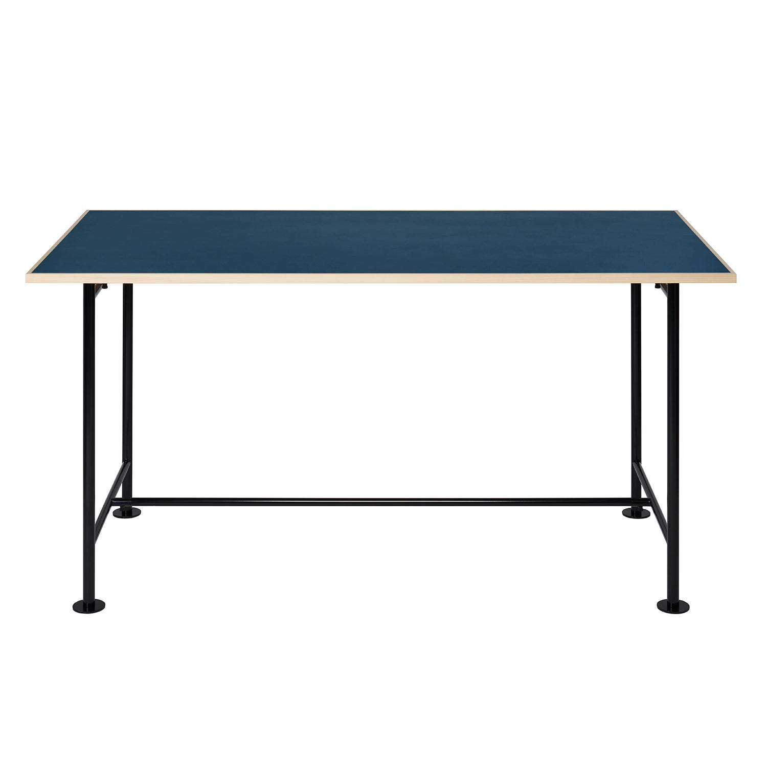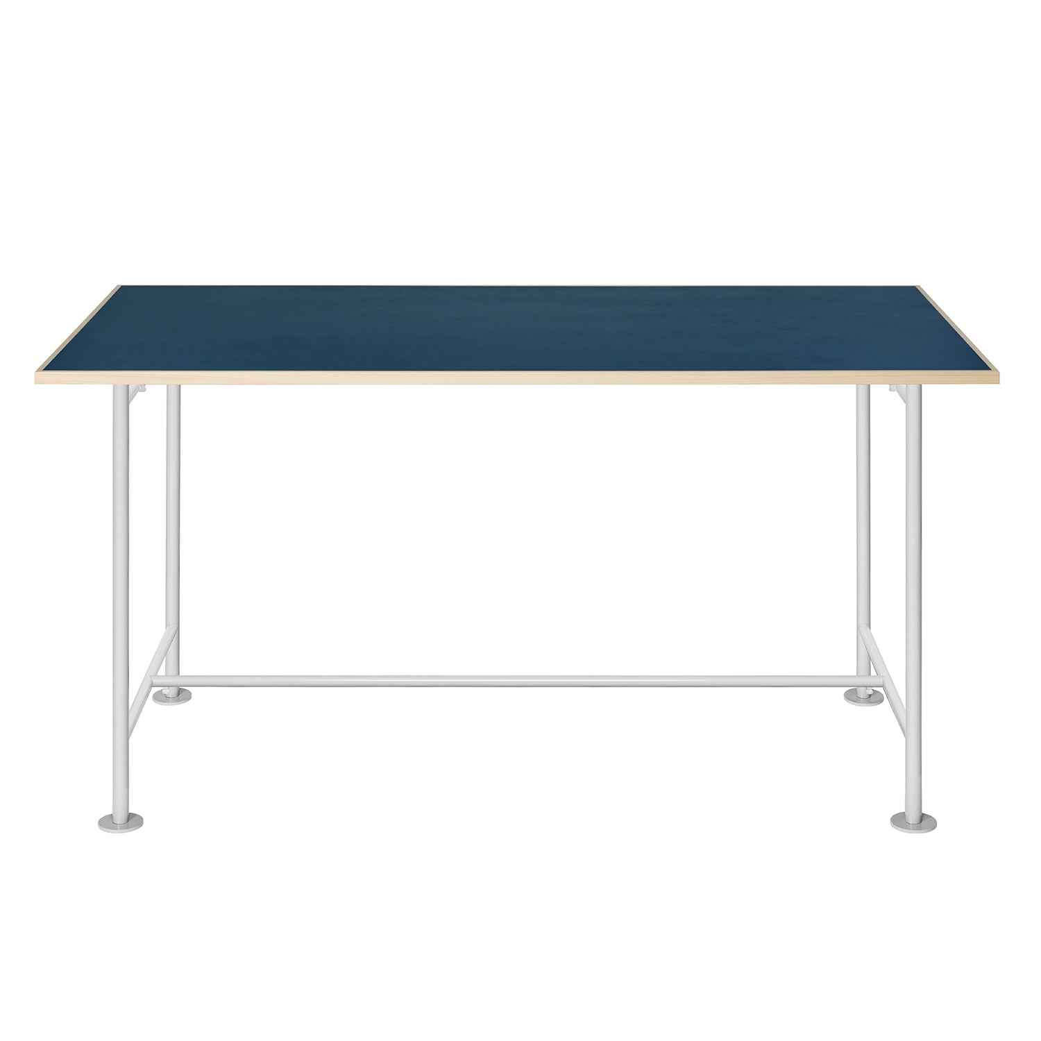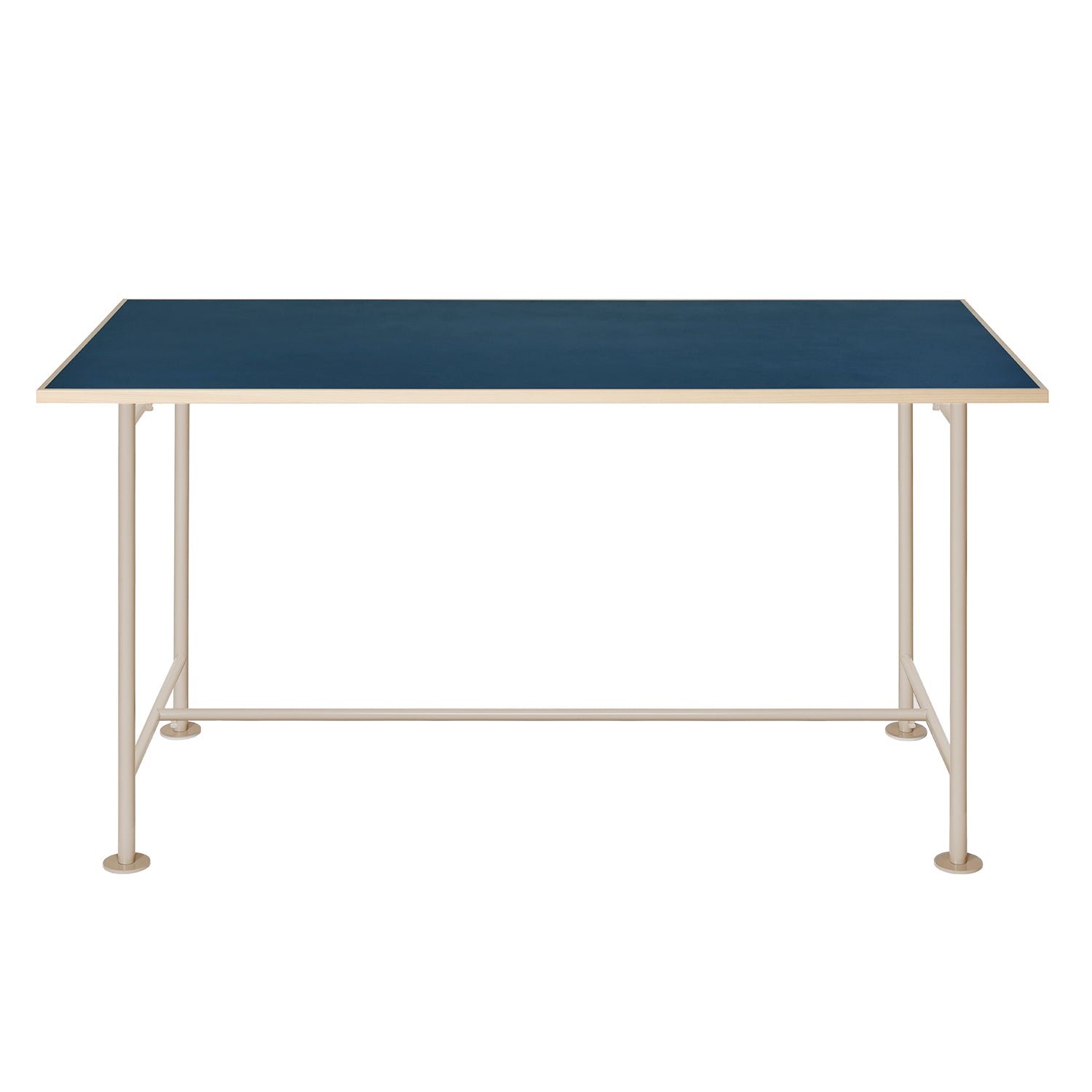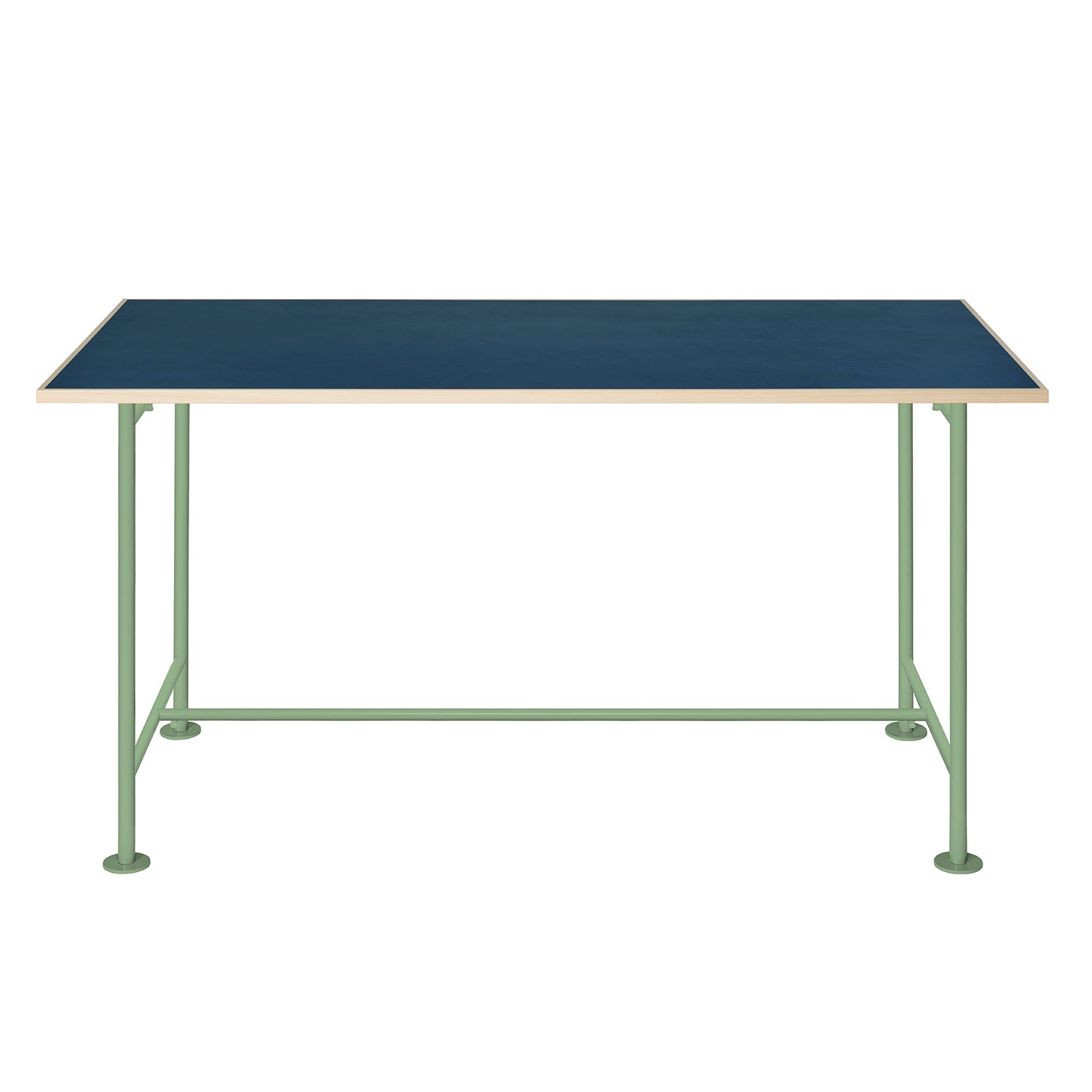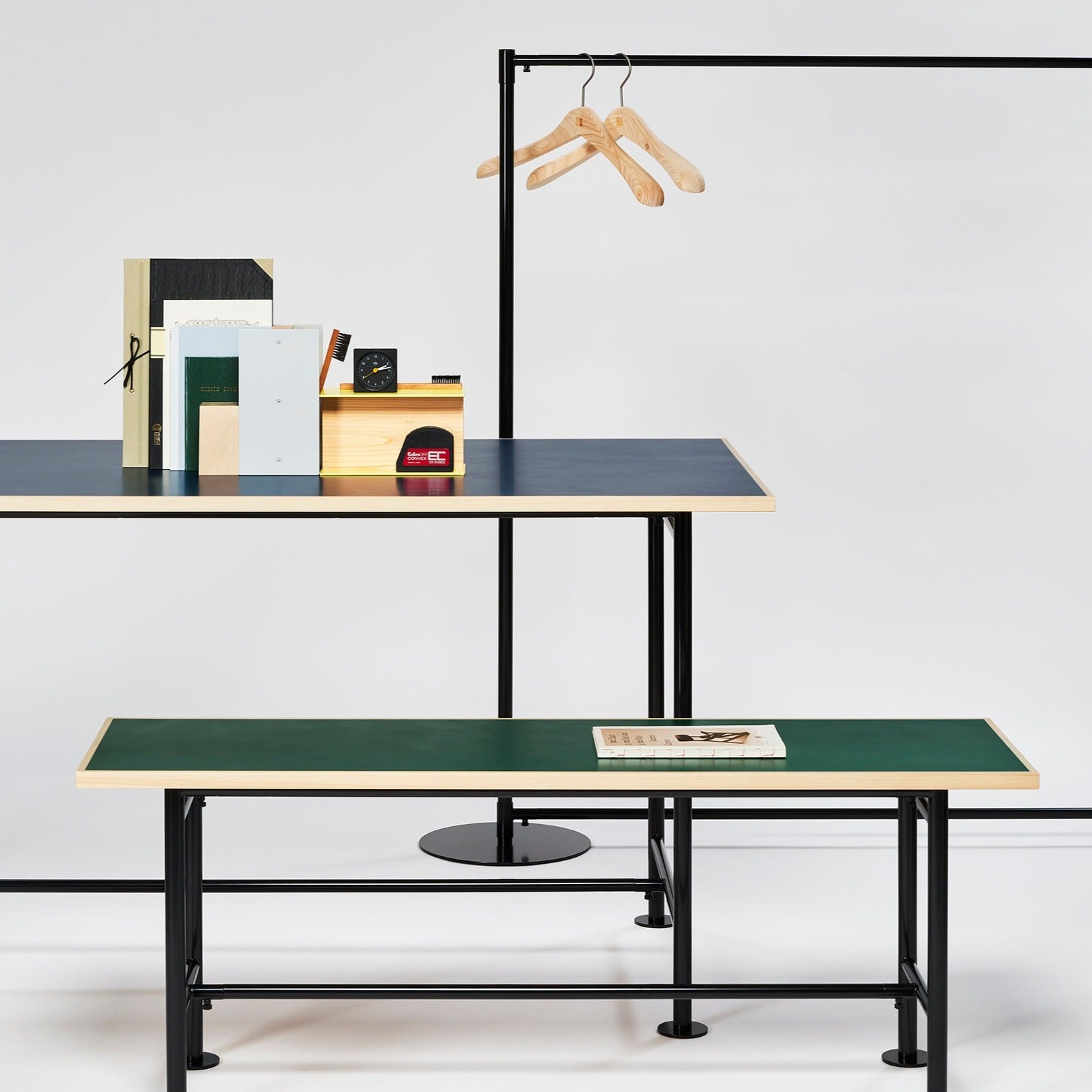 組立式のスチール脚に、カラーMDF とヒノキを使用した天板を合わせたテーブルです。
