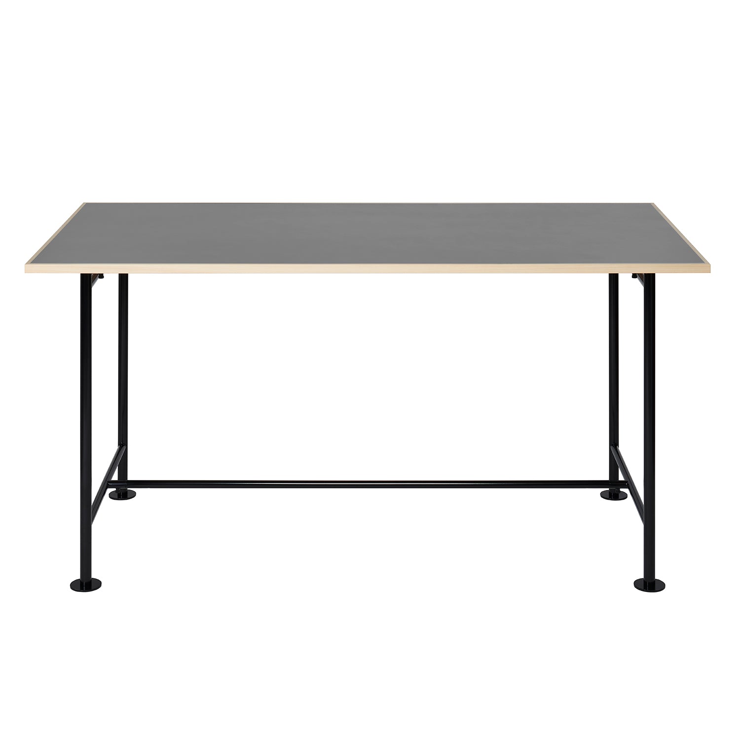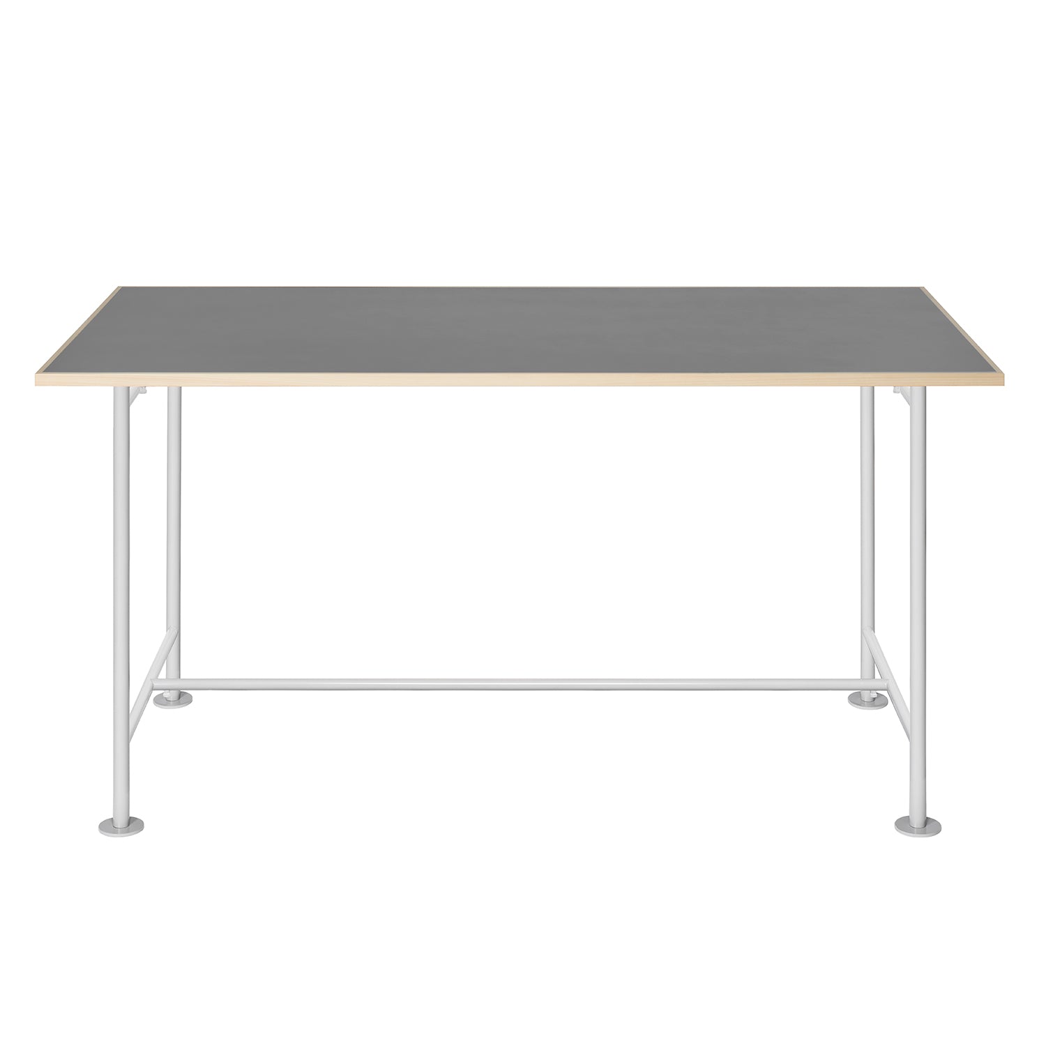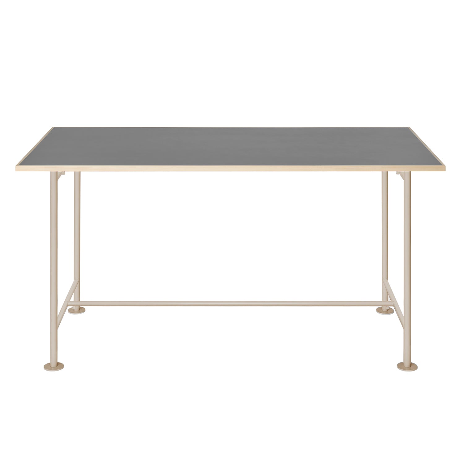 組立式のスチール脚に、カラーMDF とヒノキを使用した天板を合わせたテーブルです。