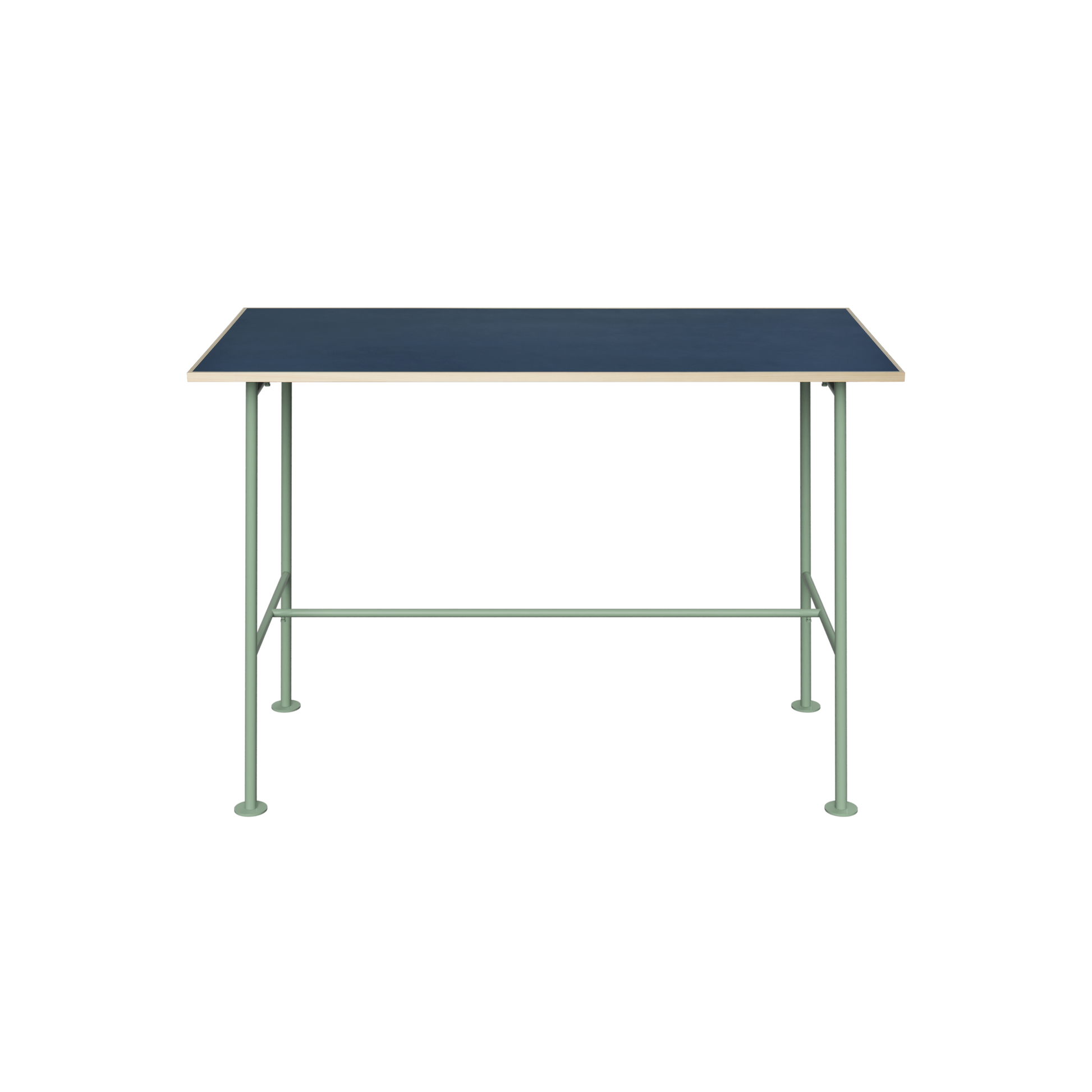 組立式のスチール脚に、カラーMDF とヒノキを使用した天板を合わせたテーブルです。