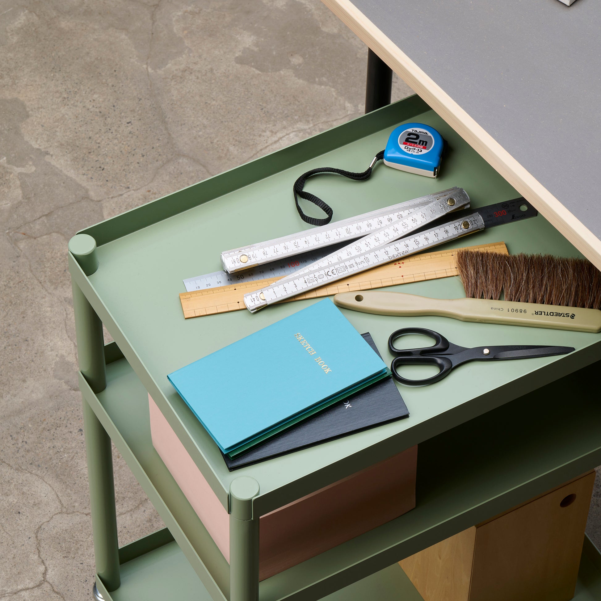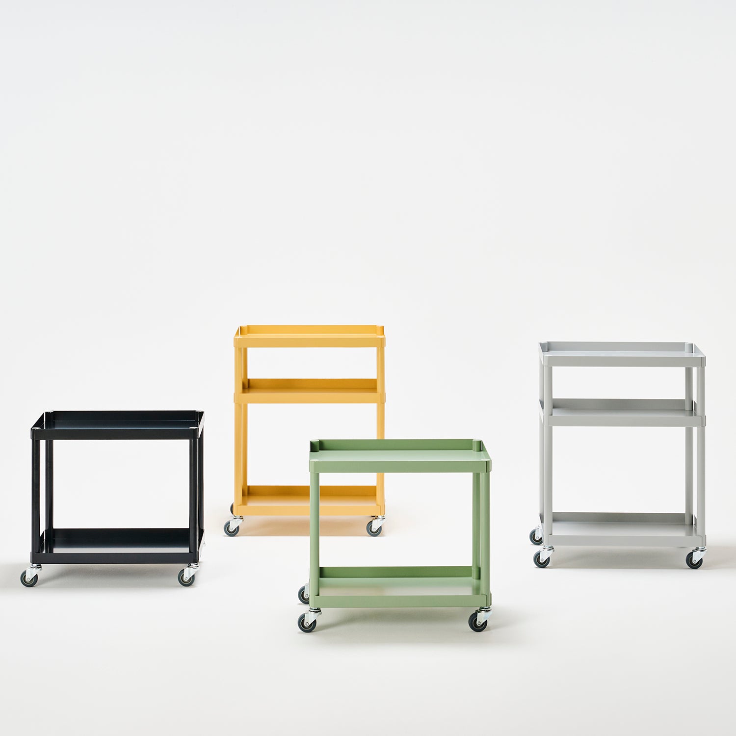 スムーズに持ち運びができるため、キッチンやリビング、ワークスペースなどでシェルフやテーブルとしても活躍します。