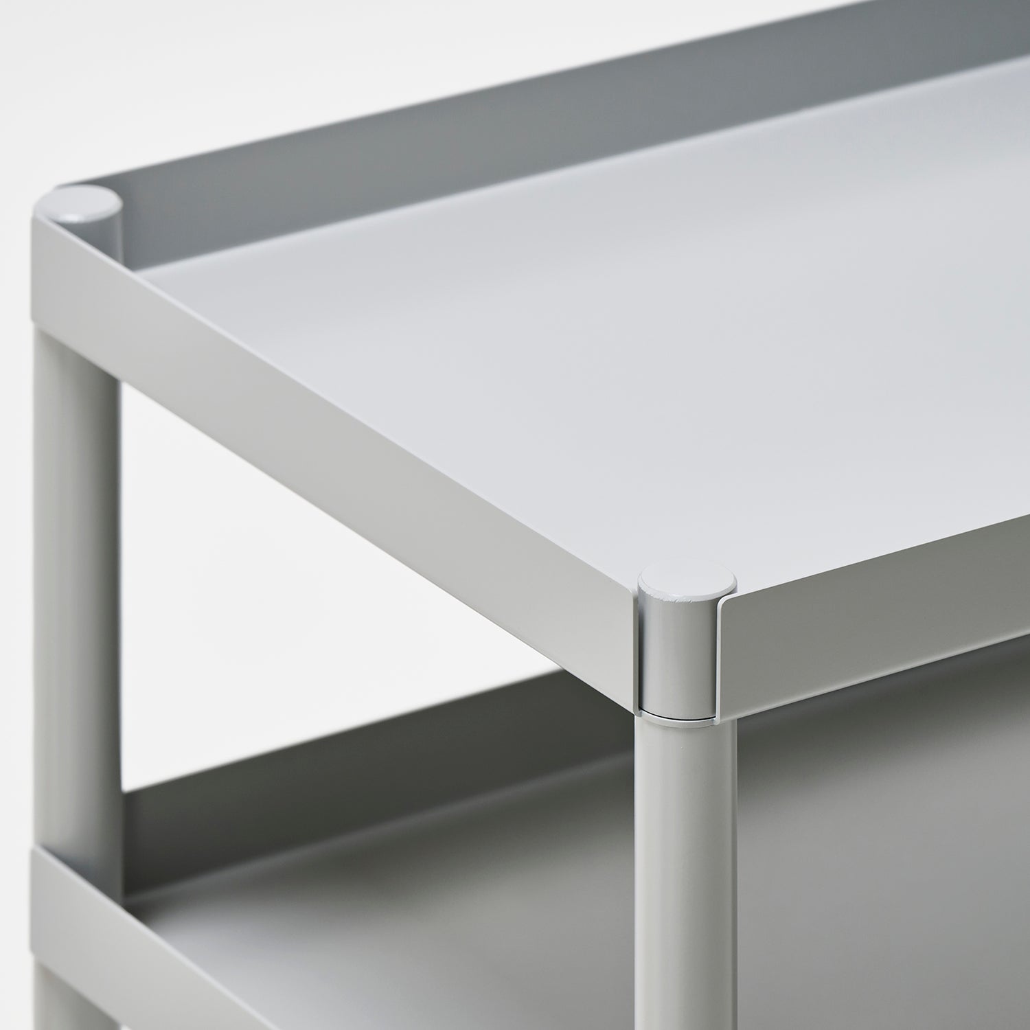 組立式のワゴンです。シンプルなジョイントで構成されているので、用途に合わせて支柱と天板を自由に組み替えることができます。